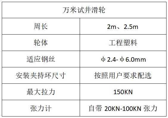 主要技術(shù)參數(shù)走纜方式繞主、副計(jì)量輪一周適應(yīng)鋼絲φ2.4……